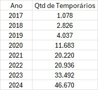 E-COMMERCE – E a tendência maior de vendas no último trimestre não está impulsionando somente as contratações temporárias no comércio. Paula, do Caged, afirma também que a maior tendência de contratações está no setor logístico. Entre 2017 e 2024, o número de temporários contratados para a posição de auxiliar de logística cresceu, 4229%. Em 2017, a quantidade de temporários para a posição era de 1 mil, já em 2024, foi de 46,6 mil. Segundo ela, a tendência é atribuída ao crescimento do e-commerce. “Não é todo o Brasil que têm uma 25 de Março, então grande parte das compras são online”, afirmou. “Isso impulsiona o número de contratações no setor logístico.” No ano passado, em comunicado para a imprensa, a Amazon anunciou a abertura de 6.500 vagas temporárias para atender à alta demanda da Black Friday e das festas de fim de ano. Neste ano, a Shopee abriu 10 mil vagas, entre temporárias e permanentes, para reforçar o time na temporada de vendas de fim de ano.