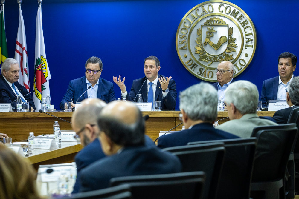 Fizeram parte da mesa o presidente da ACSP, Roberto Mateus Ordine, o presidente da Confederação das Associações Comerciais e Empresariais do Brasil (CACB) e da Federação das Associações Comerciais do Estado (Facesp), Alfredo Cotait Neto, e o ex-senador Heráclito Fortes, coordenador do Cops.