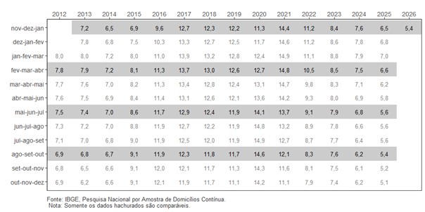 Taxa de desocupação – Brasil – 2012/2026