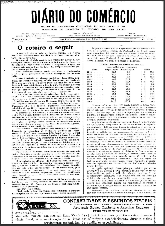 Na capa daquela edição histórica, um editorial com o título “O roteiro a seguir” trazia alguns compromissos assumidos pela direção do diário: “A orientação do Diário do Comércio será impessoal, educativa, doutrinária. Veiculará e propagará ideias. Estará a serviço, é óbvio, dos interesses das classes produtoras...”