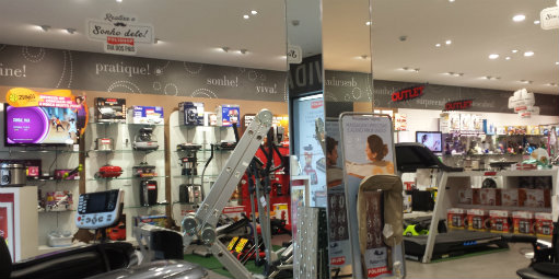 Área de testes de produtos dentro da Polishop