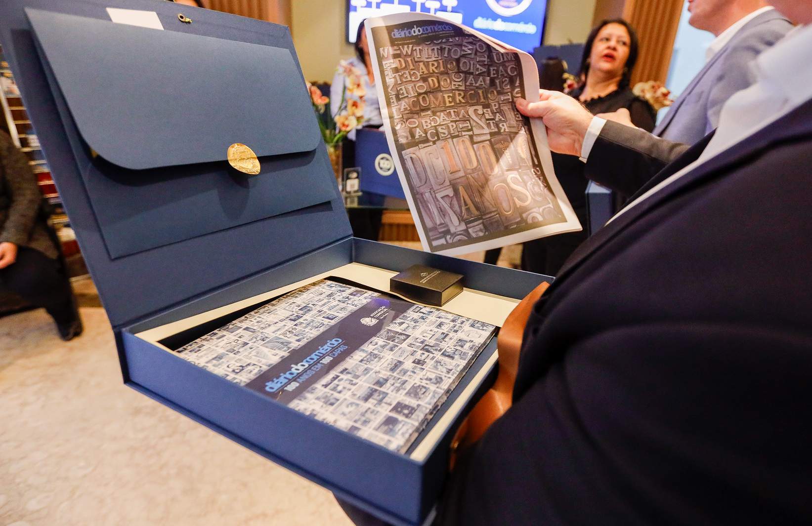Todos os participantes da cerimônia receberam um box contendo a edição do livro de 100 anos, com 100 capas publicadas pelo jornal, a edição comemorativa impressa do Diário do Comércio, uma medalha comemorativa e uma folha de selo postal, confeccionados pela Casa da Moeda do Brasil, além de um QR Code para acesso a todas as fotos do evento.