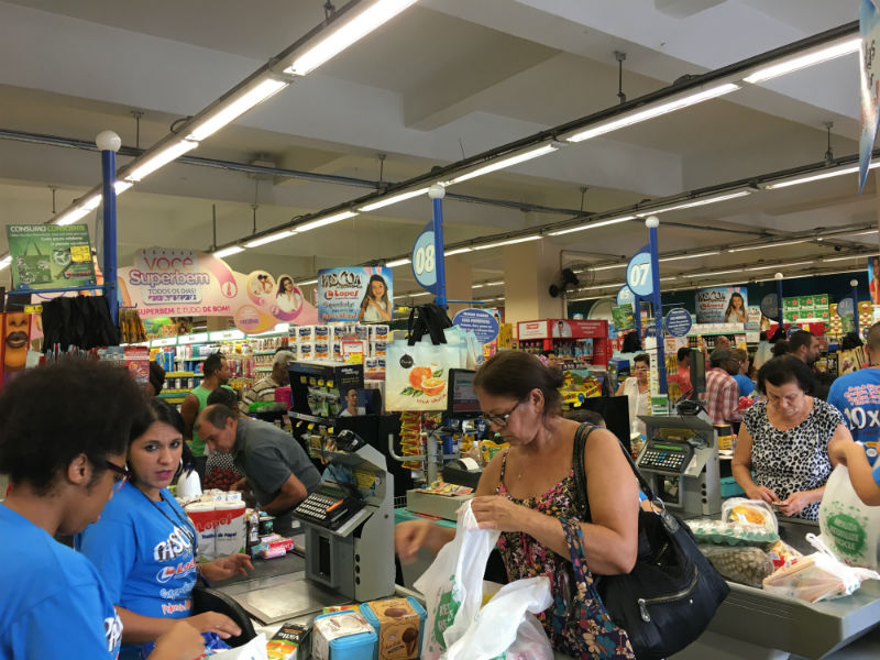 Caixas do supermercado em Guarulhos