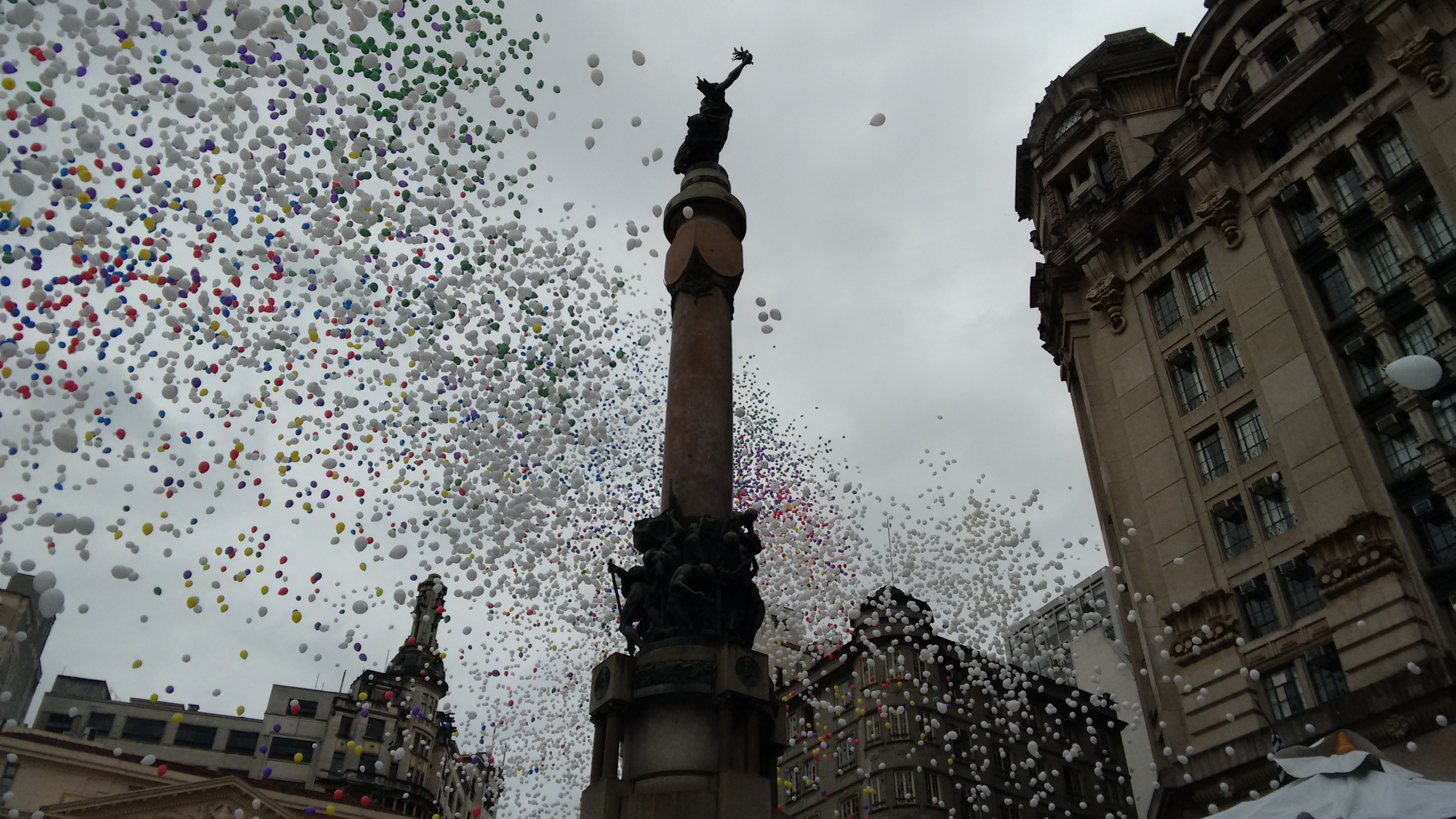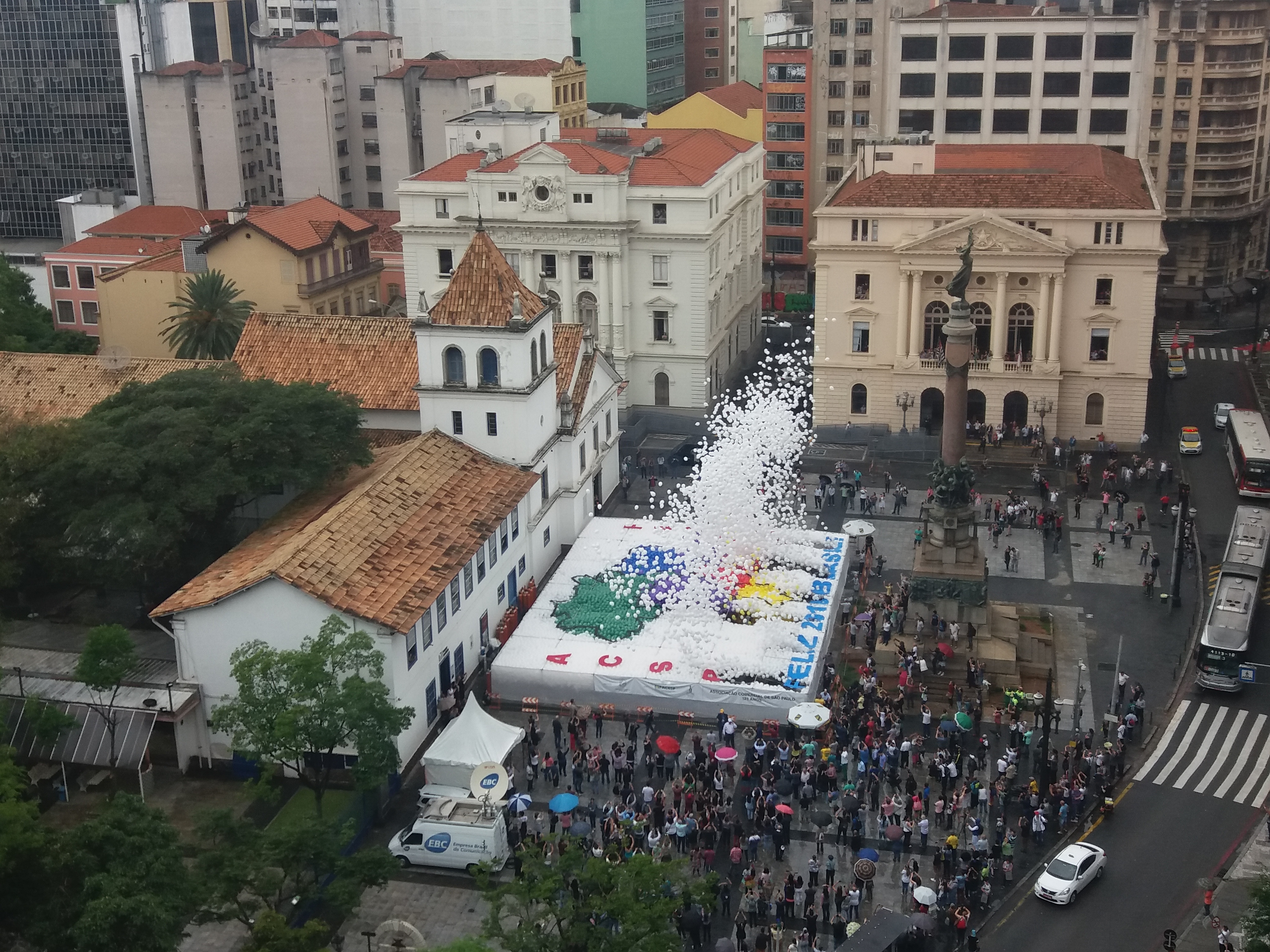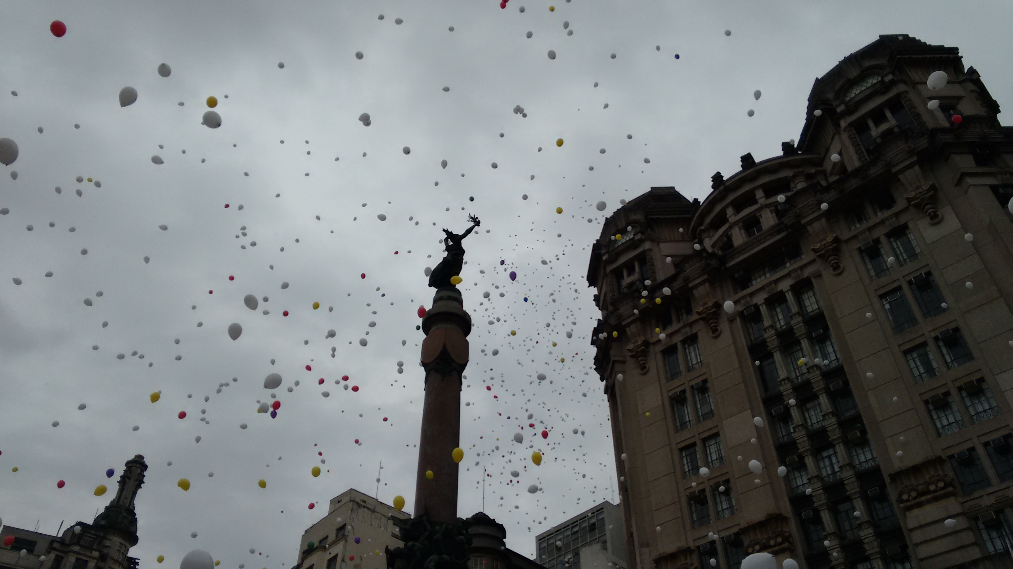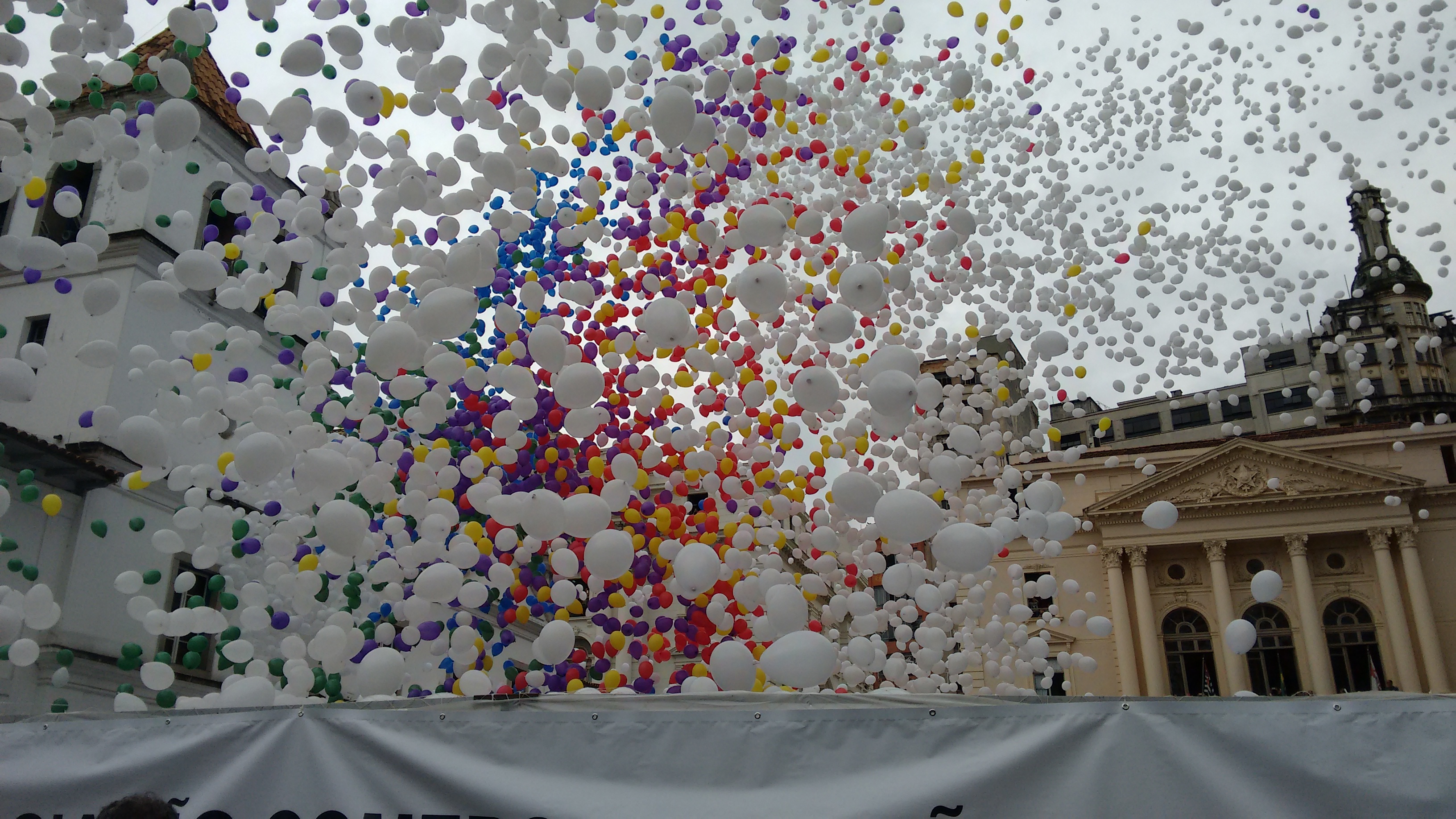 Soltura dos balões da ACSP no Pátio do Colégio