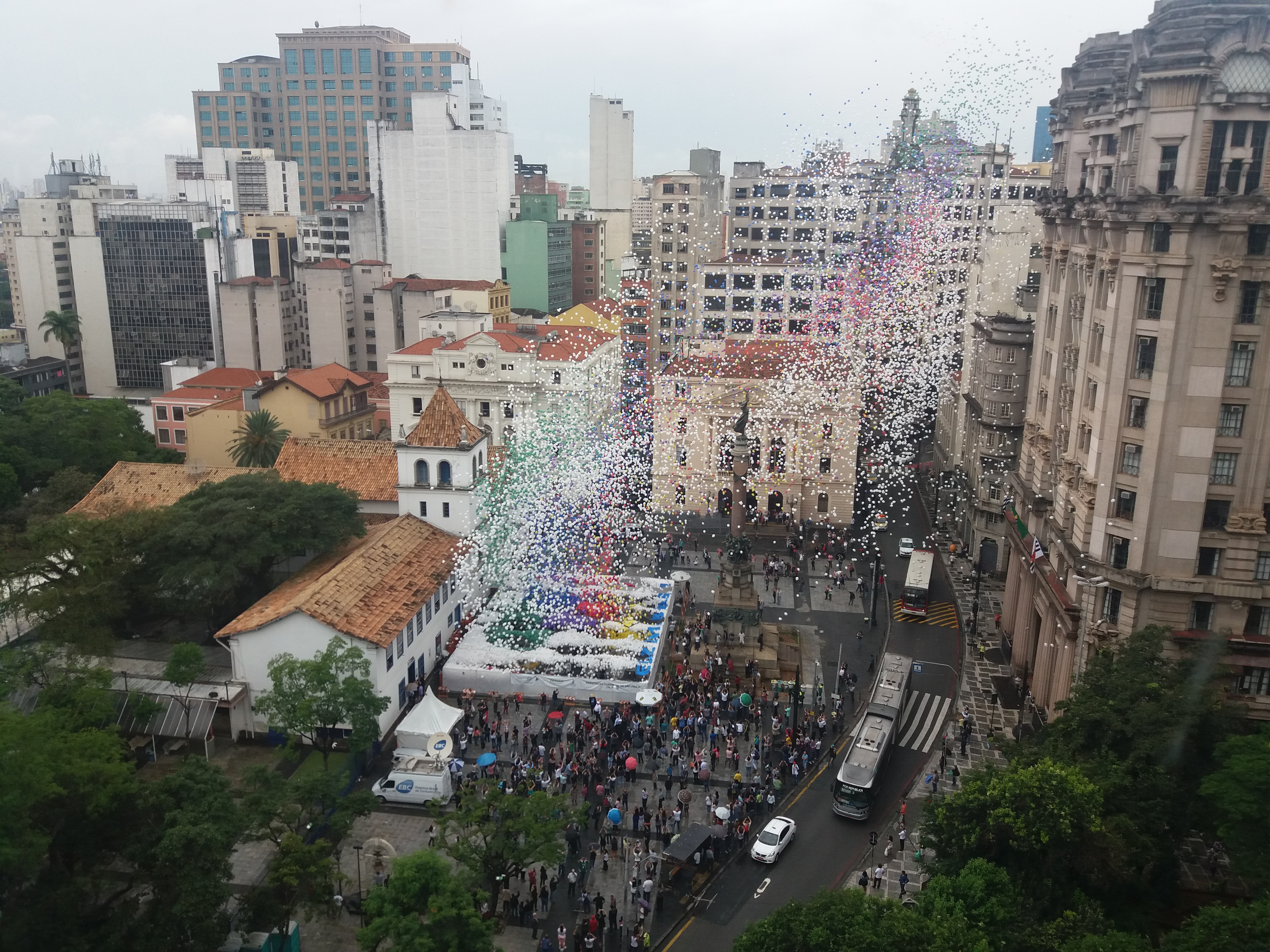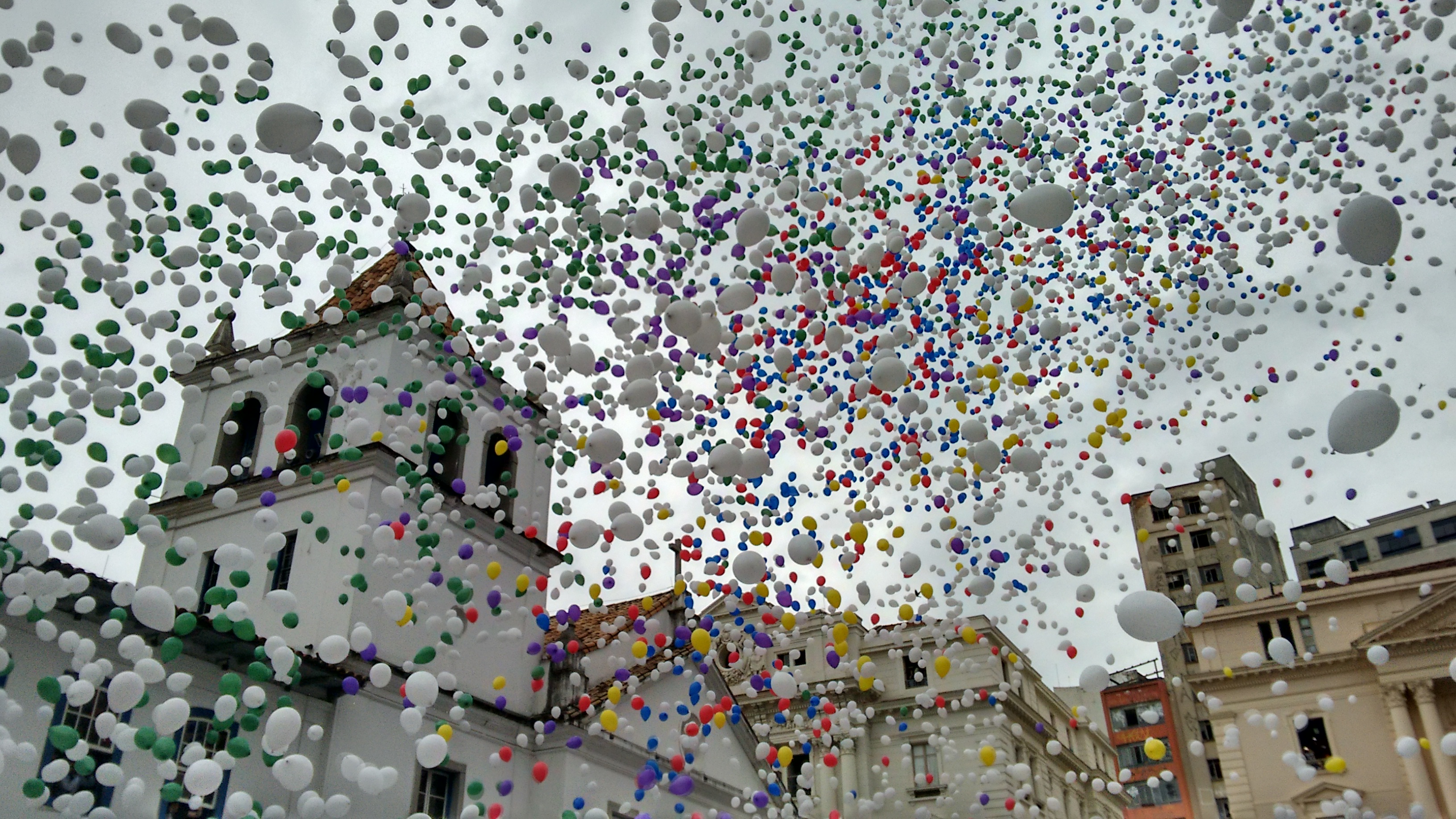 Quando o número chegou a 20 mil balões, a festa passou a ser realizada no Pátio do Colégio.