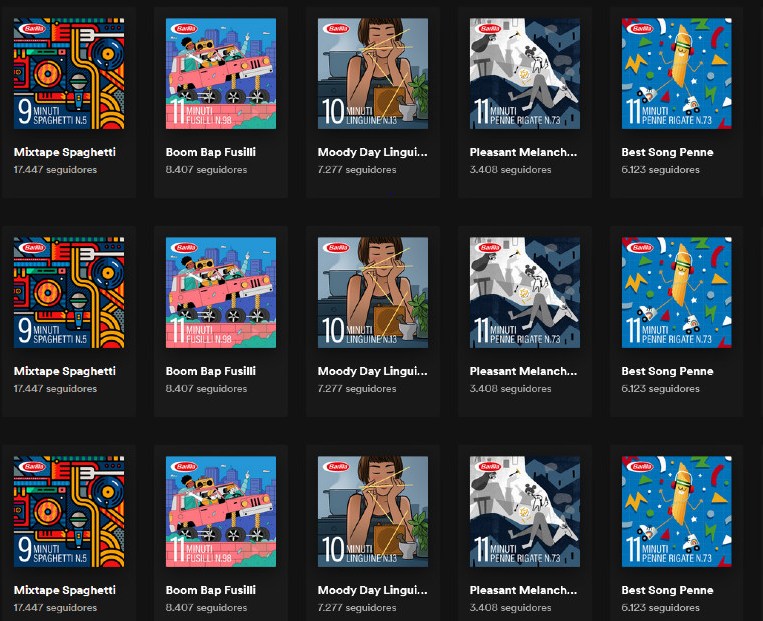 Ainda pensando na experiência do cliente, a Barilla criou uma playlists no Spotify com músicas que marcam o tempo exato de cozimento de cada uma das massas comercializadas por ela.