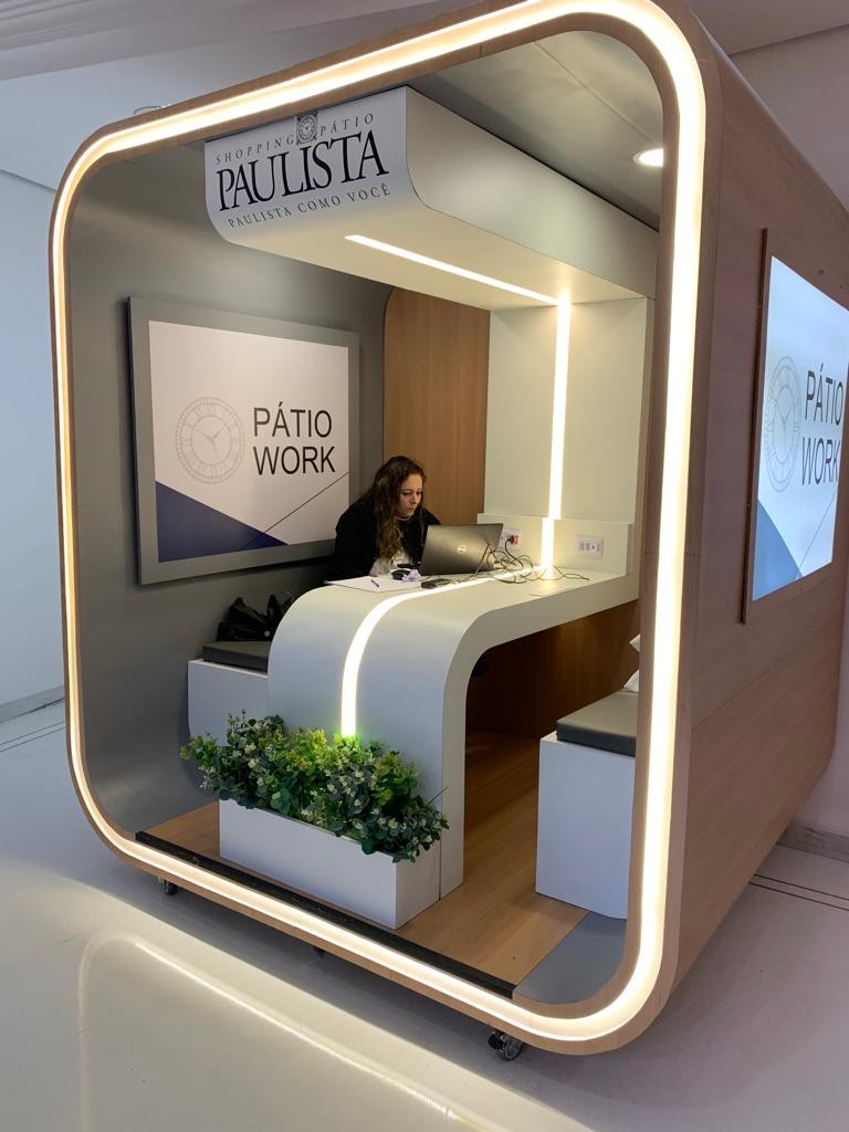 Para atrair o cliente que tem trabalho no escritório e em casa, o shopping também montou ‘cápsulas’ (Pátio Work) em corredores prontas para o uso do computador.