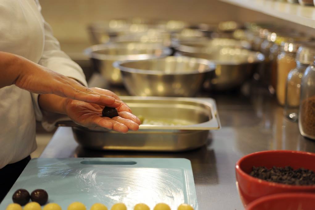 Foram muitas visitas a diversas fazendas de cacau na Bahia para encontrar um produtor que respeitasse a maturação do fruto. Em seguida, Juliana montou uma fábrica de chocolate artesanal nos fundos do ateliê para abastecer exclusivamente a brigaderia.