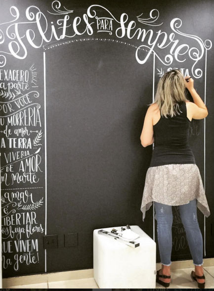 A técnica, na verdade, reproduz um quadro negro ilustrado com desenhos, frases e informações personalizadas feita a giz sobre um aniversariante, casal, família ou estabelecimento comercial.