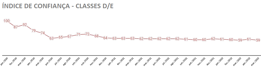 No caso da classe C, segundo o economista, “as injeções de recursos oriundos do saque do FGTS, da antecipação do 13º salário de aposentados e pensionistas, do Auxílio Brasil, além da ampliação do crédito consignado, estariam por trás do aumento da confiança.”