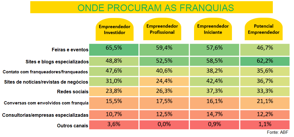 Um levantamento feito pela Associação Brasileira de Franchising (ABF) identificou quatro tipos de empreendedores interessados em investir em franquias. Para chegar a esses perfis, a associação entrevistou 550 pessoas que participaram da ABF Franchising Expo 2022.
