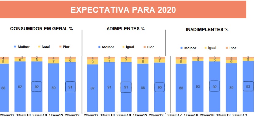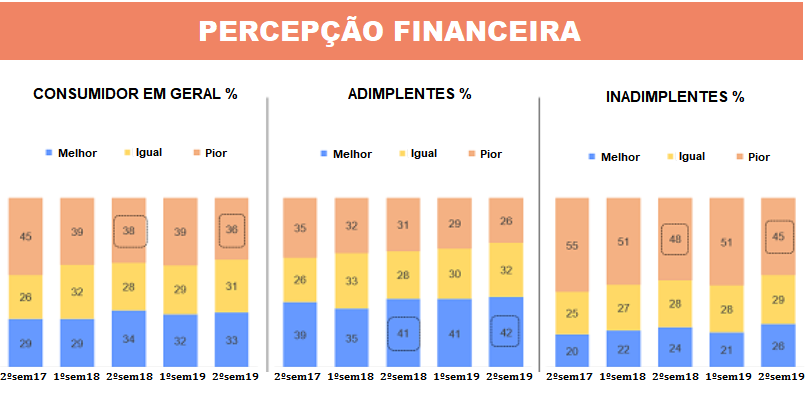 De acordo com o estudo, cresceu de 24% para 26% o número de consumidores inadimplentes que veem uma melhora da situação financeira na comparação entre o segundo semestre de 2019 com igual período de 2018.