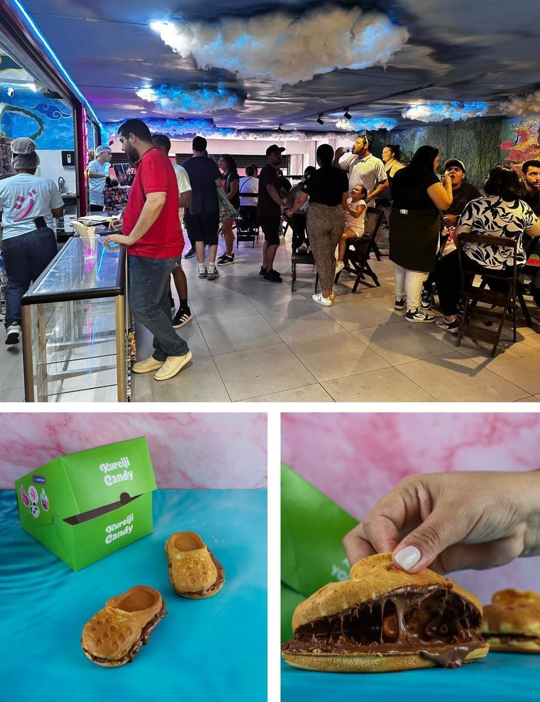 A "fofura" dos produtos da Kureiji é parte da estratégia. Tayakis de panda, doces inspirados em animes, bebidas decoradas com flores e formatos inusitados (como o docinho em forma de Crocs) são pensados para gerar encantamento.
