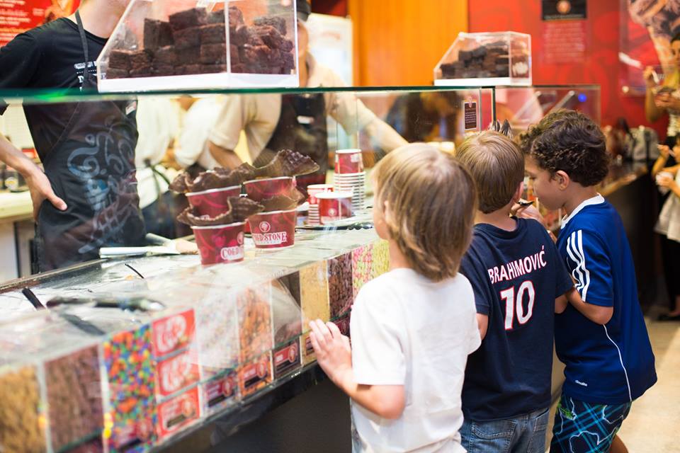 Os pedaços de brownie encontrados no sabor mais vendido da casa – chocolate fudge brownie – vêm diretamente de Nova Iorque, da padaria Greyston Bakery, que se compromete a empregar pessoas com dificuldades profissionais e a treiná-las.