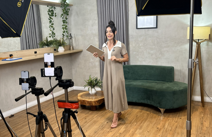 No Live Center do Mega Polo é possível realizar as transmissões B2B (lives fechadas) e B2C (como TikTok Shop) em estúdios equipados com câmeras profissionais, iluminação, áudio e celulares dedicados.
