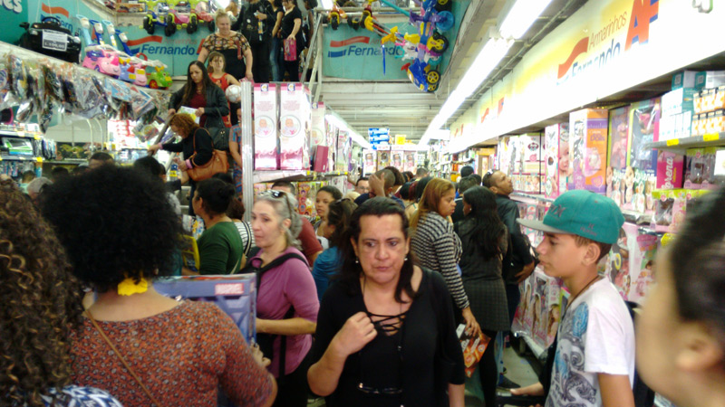 Tradicionais lojas como a Armarinhos Fernando, Matsumoto, Semann, MP Brinquedos e outras menores estavam lotadas.