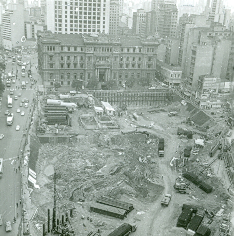 Esse processo teve um de seus passos iniciais ainda em 1971, quando a Companhia do Metropolitano adquiriu o Palacete Santa Helena, uma construção luxuosa de 1925 que abrigou teatro e cinema. Foi posto abaixo, ainda a marretadas, em outubro de 1971, algo que hoje talvez fosse considerado impensável, pelo valor histórico do imóvel.