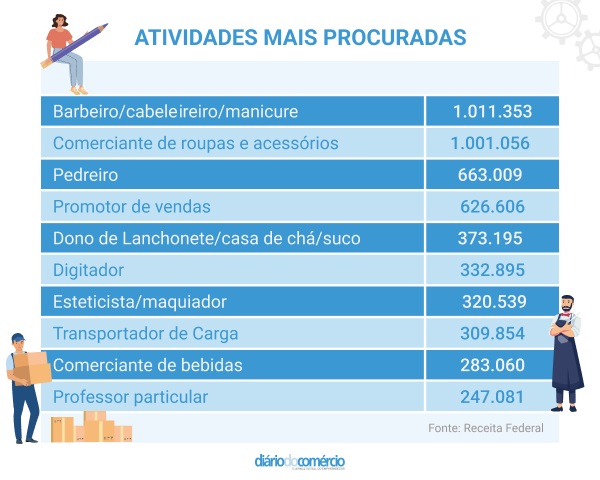 De acordo com a última pesquisa do Sebrae, realizada em 2022 para analisar o perfil de microempreendedores, atividades ligadas ao setor de beleza, como cabelereiros, barbeiros e manicures, e ao comércio de roupas e acessórios lideram o ranking dos segmentos mais procurados. Em cada um desses grupos, o número de pequenos negócios supera a cifra de 1 milhão.