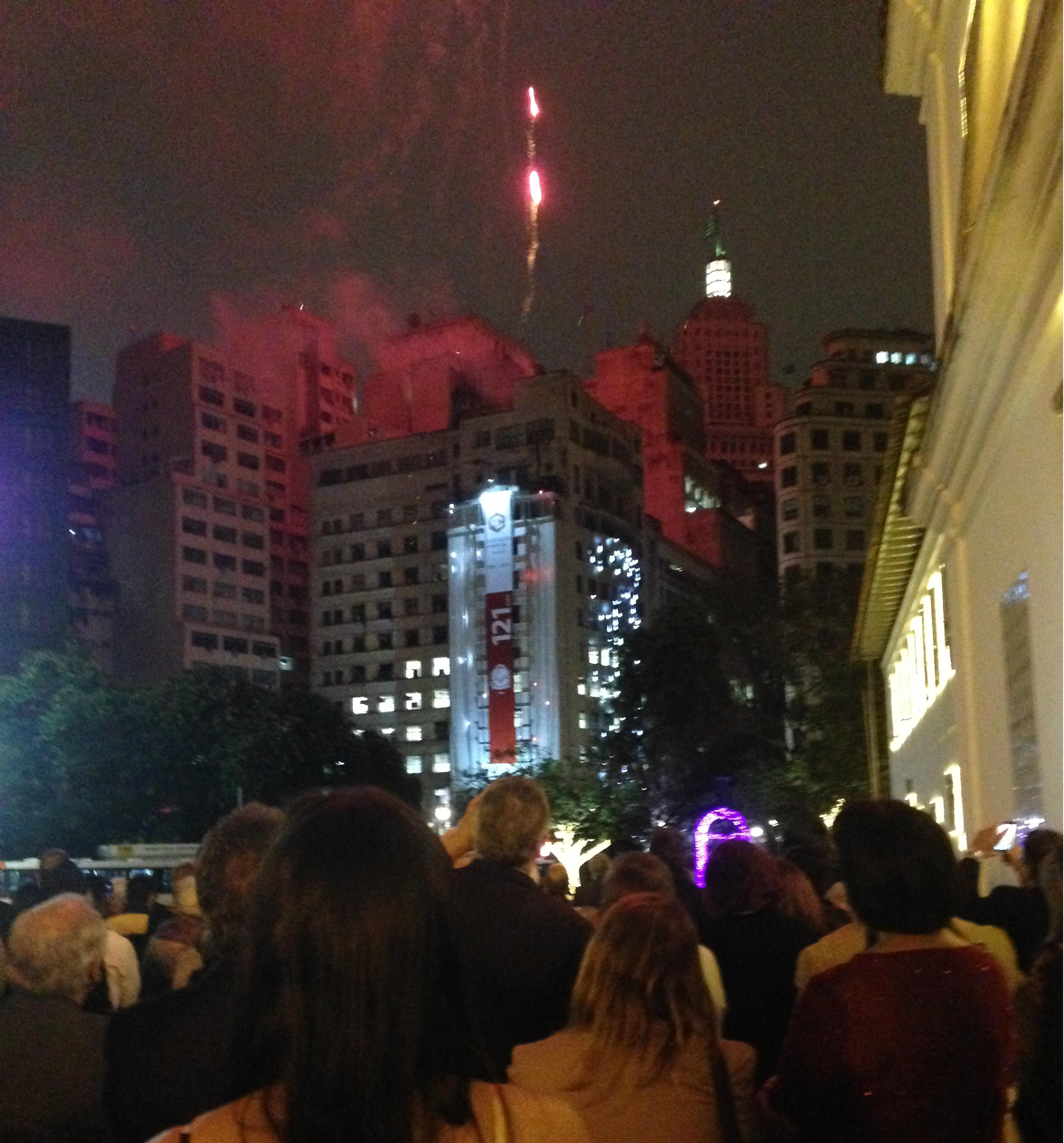 Uma chuva de fogos coloriu o céu do centro de SP