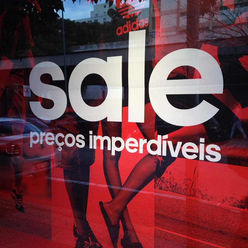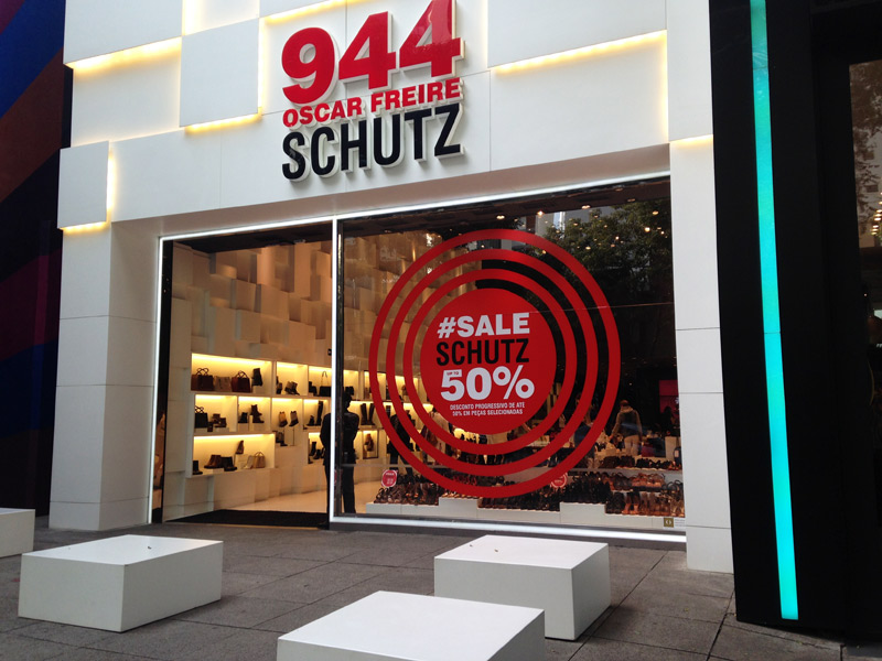 Loja de sapatos anuncia descontos na rua Oscar Freire