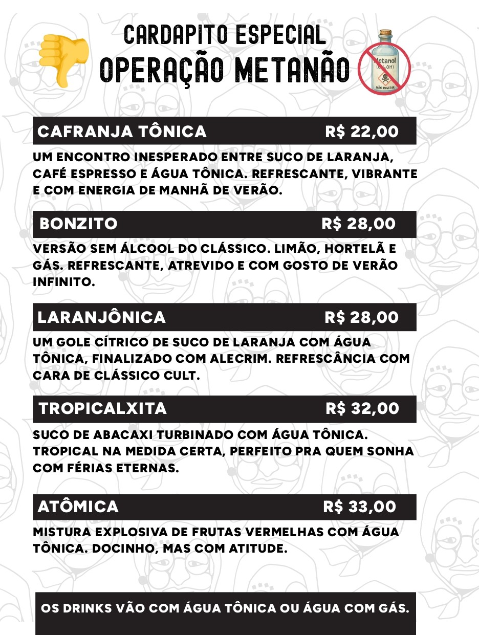 Assim que surgiram os primeiros casos, o estabelecimento criou o “Metanão”, cardápio com bebidas não alcoólicas que utiliza ingredientes comuns e que são facilmente encontrados na casa, como frutas.