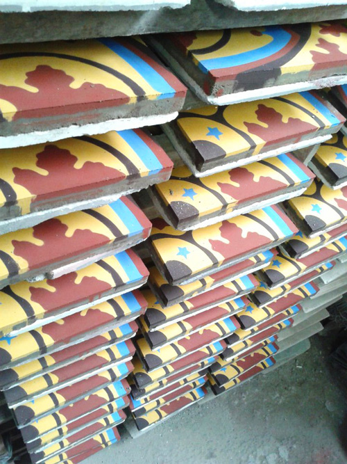 Ao lado de um primo, Júnior representa a quarta geração da família em um comércio que parece mágico. As tintas são preparadas, o cimento é moldado, as cavidades são preenchidas, o secante é espalhado, e o ladrilho é prensado. Desse processo, já surge um quadrado colorido quase pronto para ser assentado.