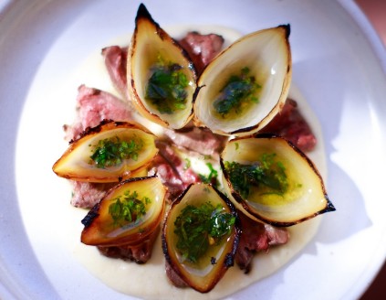 O coração de pato puxado na frigideira e pétalas de cebolas tostadas temperadas com chimichurri, purê de couve-flor com salsa verde e flor de sal (R$ 65) é um prato emblemático do restaurante Cora, comandado pelo chef argentino Pablo Inca. Na rua Amaral Gurgel, 344, o restaurante serve pequenos pratos no sexto andar de um prédio revitalizado, que oferece vista para o Minhocão.