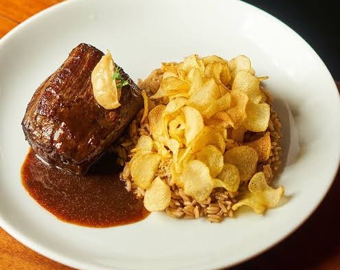 Em um espaço compartilhado com a Livraria Megafauna no edifício Copan, o restaurante Cuia, da chef Bel Coelho, serve a sua versão do clássico filé Oswaldo Aranha (R$ 93) - filé mignon grelhado com arroz, farofa, chips de batata bolinha e purê de alho assado.