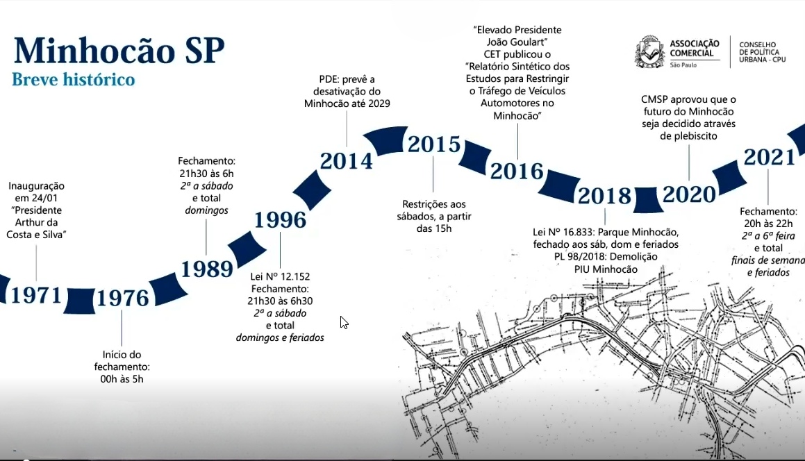 Na avaliação de Antonio Carlos Pela, coordenador do CPU e vice-presidente da ACSP, a discussão sobre o Minhocão se alinha a um movimento global de reavaliação do uso do espaço urbano. "Vamos buscar ao redor do mundo os melhores exemplos. O Minhocão corta a cidade, faz ligação direta com o Centro e, apesar da polêmica, pode nos trazer muitas soluções", disse.