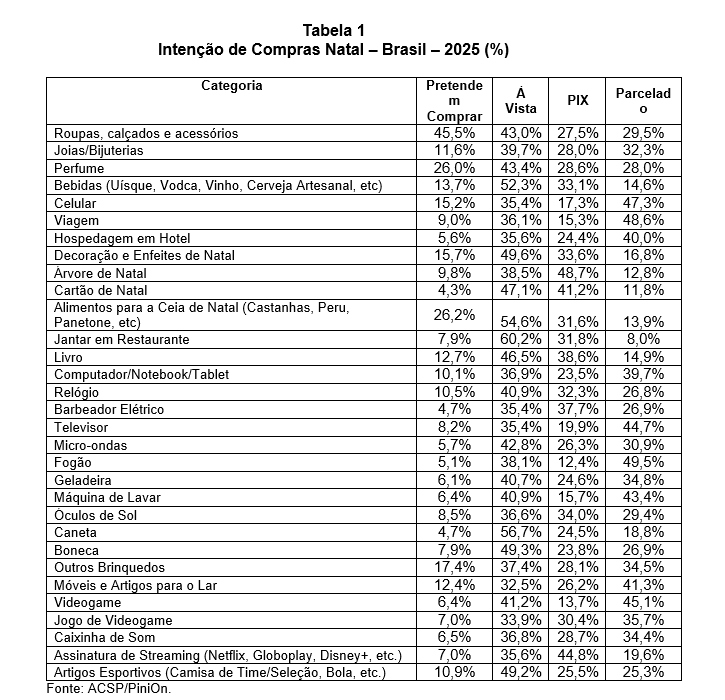 Por sua vez, celular, computador, notebook, tablet e eletrodomésticos (televisor, micro-ondas, fogão, geladeira e máquina de lavar) apresentaram intenções de compra mais altas do que em 2024 (14%, no ano passado, e 29,9% neste).