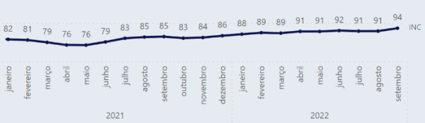 O Índice Nacional de Confiança (INC) avançou de 91 para 94 pontos entre agosto e setembro, chegando ao melhor nível desde março de 2020