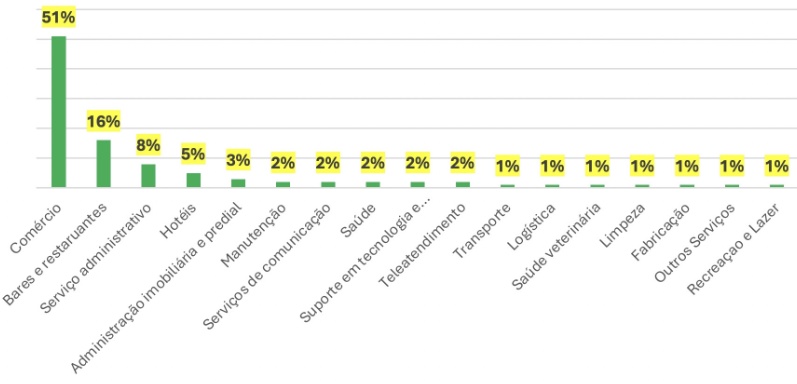 Além do comércio, o levantamento da VR mostra que há outros segmentos que também podem ser afetados com a mudança na jornada, embora em menor intensidade, como o de bares e restaurantes, no qual 16% dos negócios adotam a escala 6x1, serviços administrativos (8%), hotéis (5%) e administração imobiliária e predial (3%).