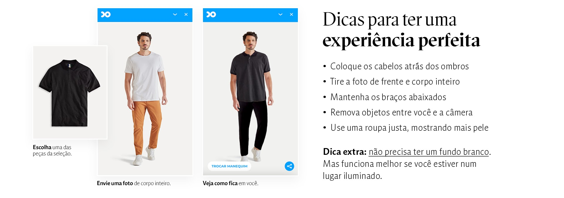 Usar uma roupa justa, remover objetos do local são outros macetes que tornam o processo melhor. Depois de fazer o upload da imagem, é só clicar na opção “Vista em Você” e deixar a ferramenta agir.