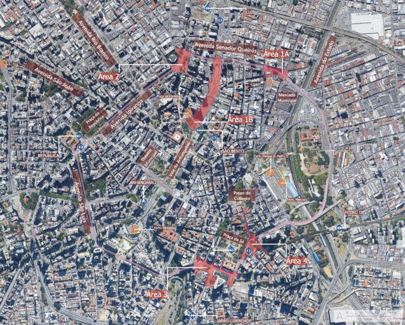 As áreas em questão envolvem o Mercado Kinjo Yamato/Boulevard Prestes Maia, a Praça Alfredo Issa, a Praça Dr. João Mendes e a Praça Clóvis Beviláqua, que foram escolhidas por serem pontos de passagem a todos que querem chegar à região central.