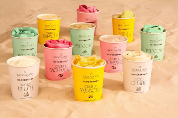 Então, no ano passado, lançamos uma collab da Hope Resort com a Baccio di Latte, que é uma sorveteria. Aí as pessoas podem pensar: 'Poxa, mas o que tem a ver', né? A moda, no caso, a moda praia, e a gente criou esse link da Hope Resort com um sorvete, e foi uma combinação muito assertiva, de sucesso, gerou um desejo. Ficou realmente a cara do sorvete, os biquínis ainda têm para vender, a promoção não acabou.