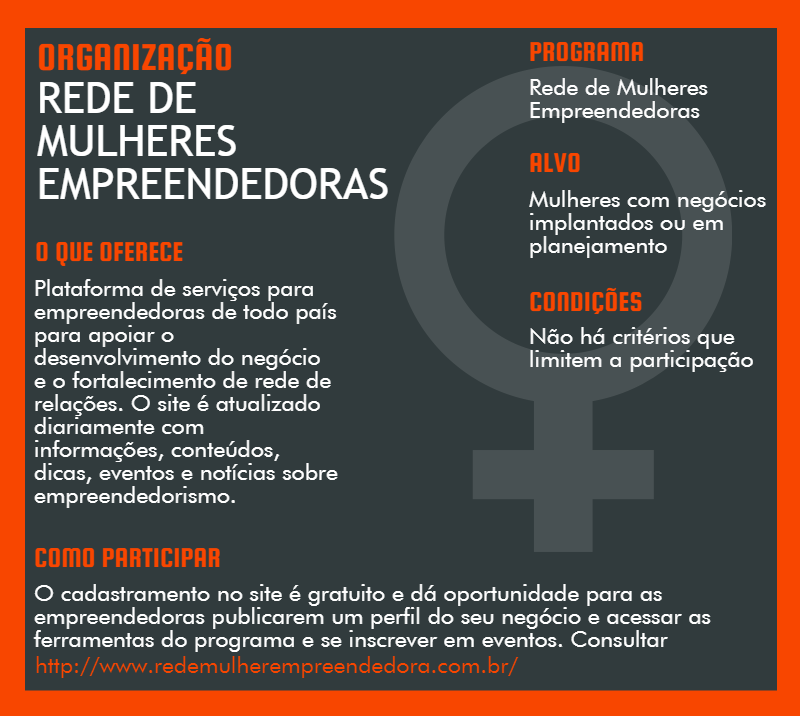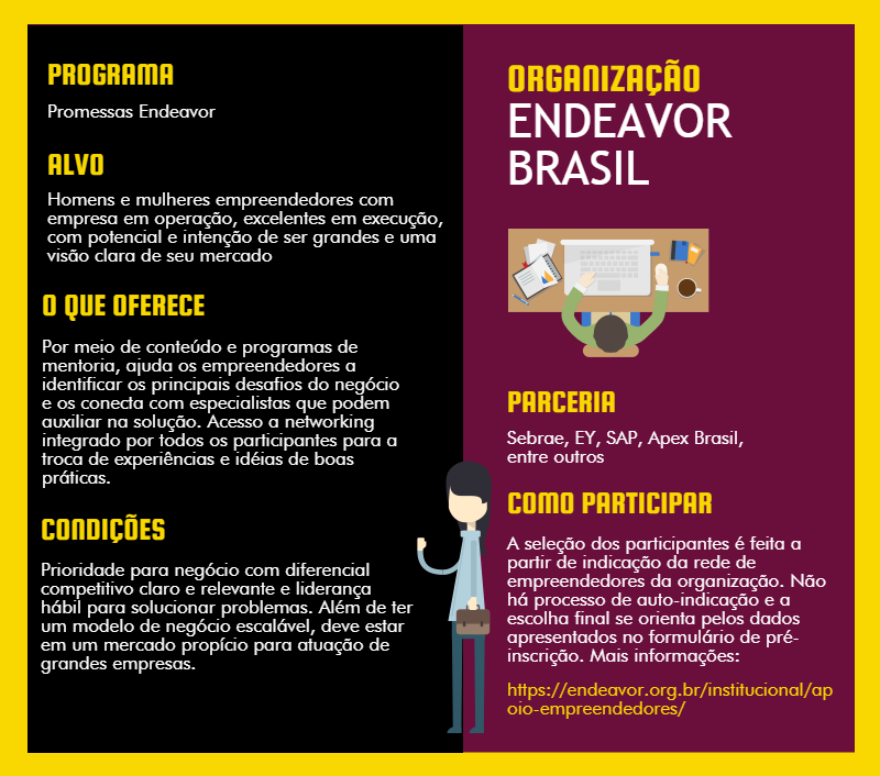 Um dos mais conhecidos pelos resultados, o programa da ONG Endeavor, não faz distinção de gênero. Esta organização, aliás, se ressente da baixa presença feminina - na estrutura de governança, há apenas três mulheres entre dezenas de homens.