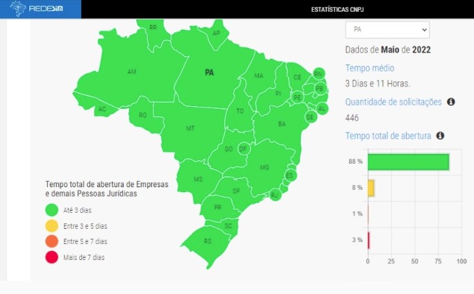 Pela primeira vez, todos os estados brasileiros e o Distrito Federal reduziram o tempo de abertura de empresas e negócios para menos de três dias. Os dados são do painel da Receita Federal, gestora do sistema integrador nacional. O último estado a bater este recorde foi a Bahia. Esse é o resultado do trabalho coletivo da Redesim nas esferas federais, estaduais e municipais para desburocratizar a abertura de empresas e beneficiar o empreendedor.