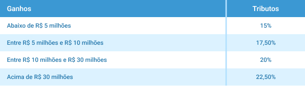 Já o imposto sobre o lucro adquirido na venda de criptoativos é cobrado sobre as negociações que ultrapassarem R$ 35 mil por mês, segundo alíquotas progressivas estabelecidas (15% a 22,5%), conforme tabela progressiva abaixo. As operações com valor inferior ou igual estão isentas de tributação.