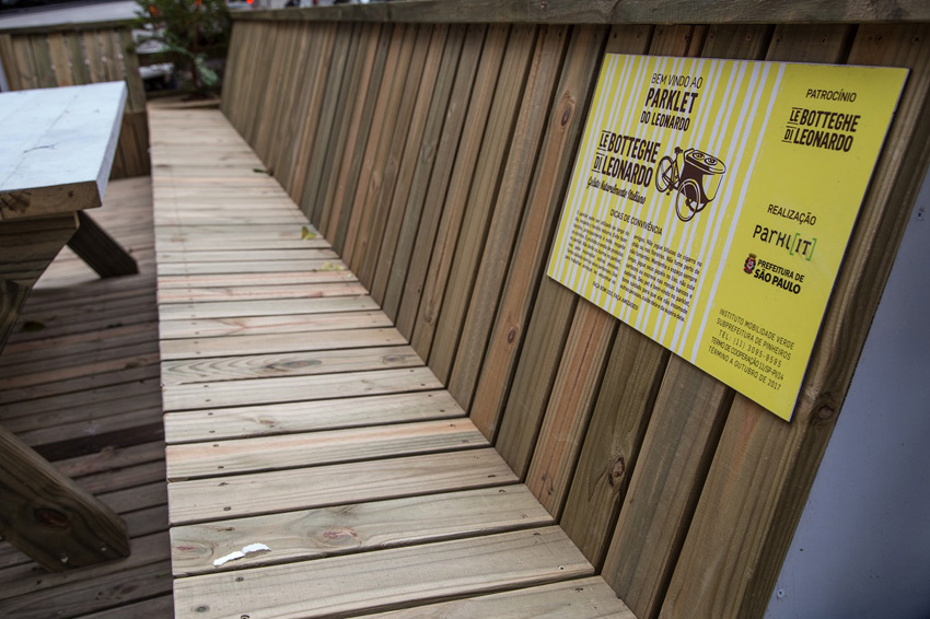 De acordo com a Secretaria de Coordenação das Subprefeituras, oito parklets foram instalados na cidade. Destes, sete são na região da Subprefeitura Pinheiros, nas ruas Padre João Manuel, Fidalga, Isabel de Castela, Francisco Leitão, Harmonia e Jerônimo da Veiga; e um na Vila Mariana, na rua Coronel Oscar Porto. Além disso, outras dez solicitações estão em análise nas subprefeituras Lapa, Pinheiros, Sé, Vila Maria e Vila Mariana, e outras onze aguardam instalação.
